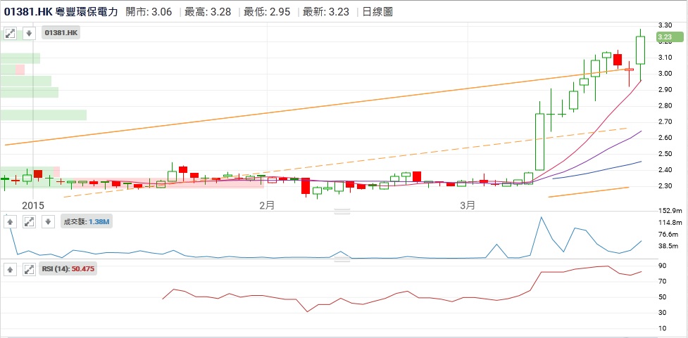 市場仍為2014年 純利增長 45.87% 及 收入增長 1.03倍 的 粵豐環保 (1381) 而喝采